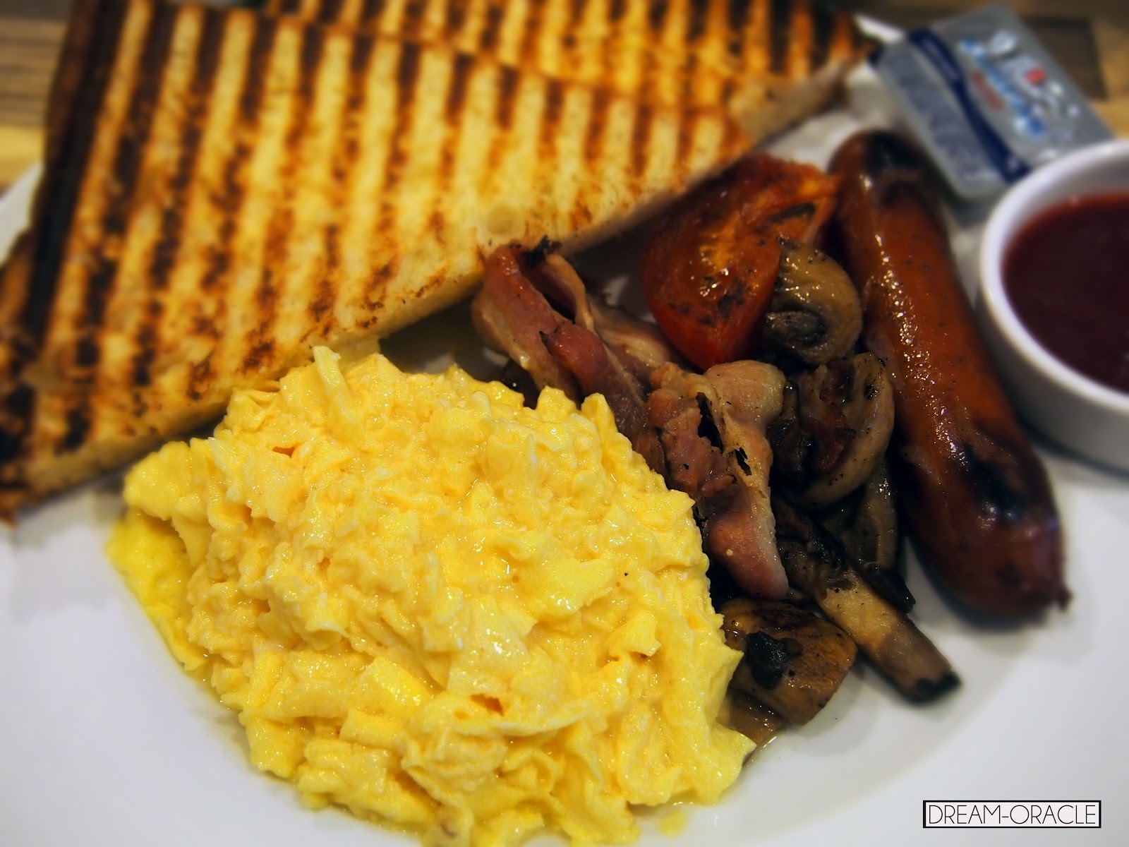 The scrambled eggs are oh so fluffy, and the bacon!! Bacon is always good, no?